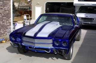 70 Chevelle: My Car. Quickest Quarter Mile run was 11.10@124Painted with House of Kolor Cobalt Blue kandy over Orion Silver Base.